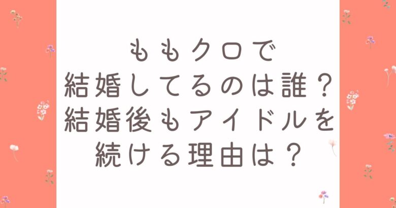ももクロで結婚してるのは誰?結婚後もアイドルを続ける理由は?