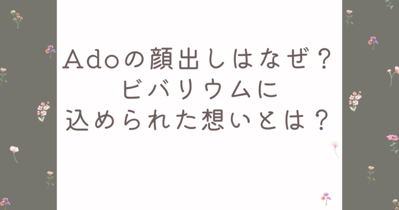 顔を出さない歌い手だったAdoさんが、2026年2月28日発売の新曲「ビバリウム」で顔出ししたと話題です。なぜ急に顔出しをしたのでしょうか?その理由や、「ビバリウム」に込められた想いについて考察してみました! Adoの顔出しはなぜ? Adoさんが急に顔出... -